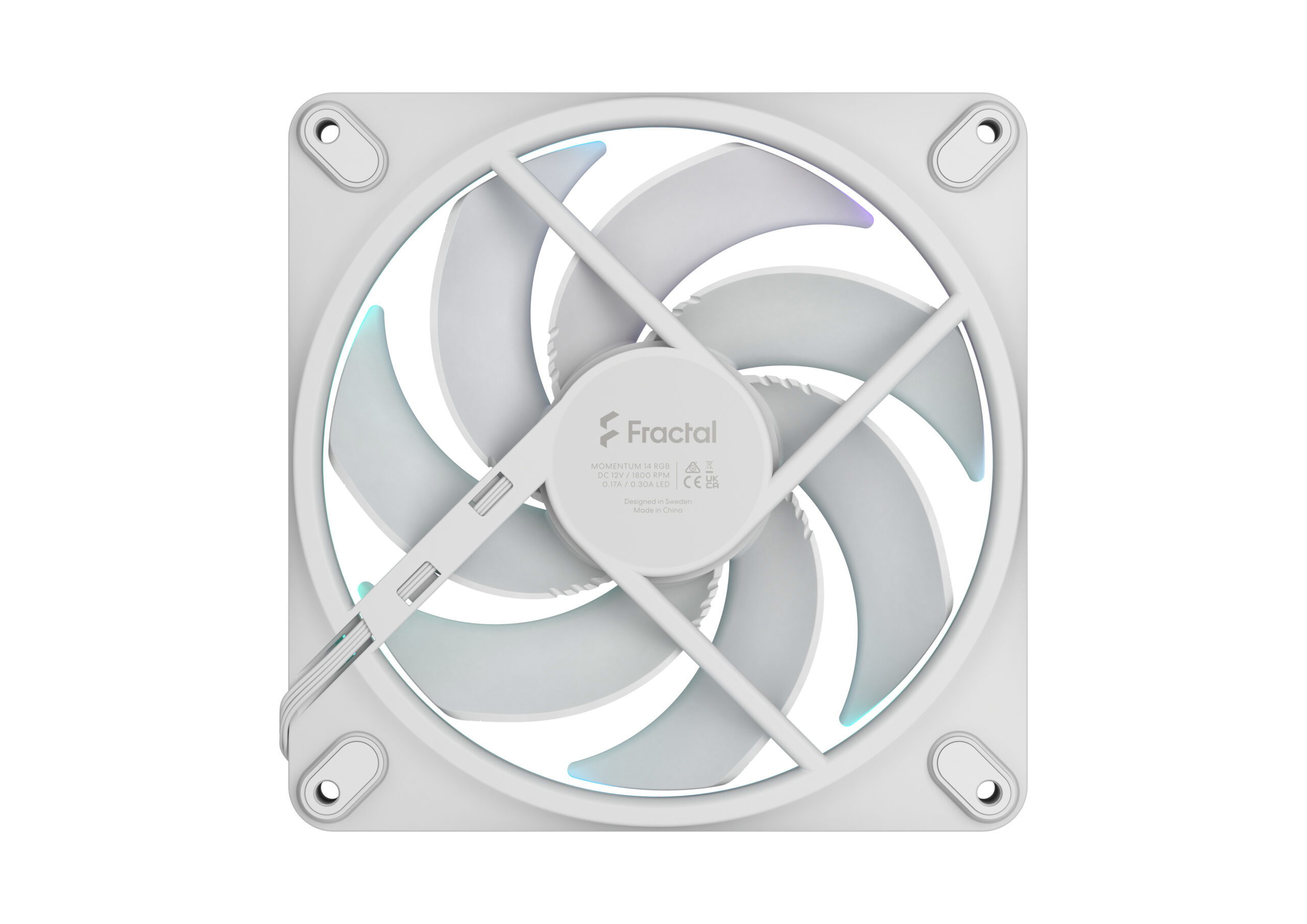 - ВентилаторSize: 140 mm;Screw hole pattern: 140 mm;LED Type: ARGB Gen 2 (20 LEDs);Bearing: FDB (Fluid Dynamic Bearing);Number of blades: 7;Rotational speed: 350 (±150) – 1800 rpm (± 10%);Zero-RPM capability: Yes (0%-10% PWM);Noise level: 28 dB(A);Airflow (CFM): 74,39;Airflow (m3/h): 126,6;Static pressure: 2,45 mm H2O;Fan input power: 2,04 W;Fan max input current: 0,17 A;Fan input voltage: 12 V;Fan starting voltage: 7 V;LED max input current: 0,3 A;LED input voltage: 5V;MTBF: >90 000 h;Unit weight: 253g;Cable length: 155 mm daisy chain + 500mm extension cable;Cable type: Fractal Connect
